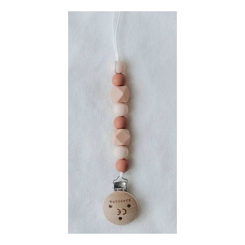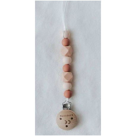 Un elegante portaciuccio realizzato in silicone: è dotato di una pratica clip in legno per appenderlo ai vestiti del tuo bimbo ed è realizzato con colori neutri che ti permettono di abbinarlo facilmente all'abbigliamento!