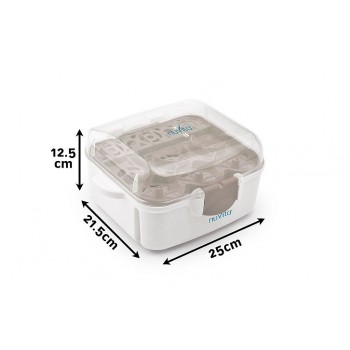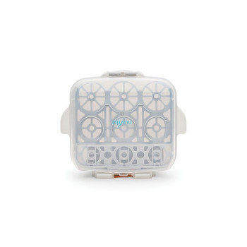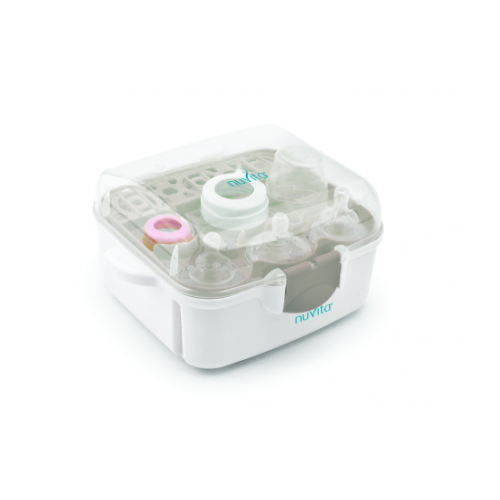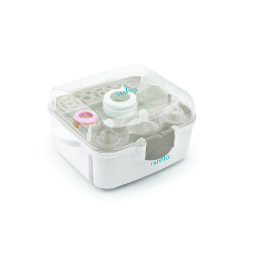 Sterilizzatore per forni a microonde compatto e leggero adatto sia in casa che in viaggio. Ha manici e chiusura a clip laterali per una maggior sicurezza durante l’uso. Dopo averlo estratto dal forno, se il coperchio non viene sollevato, il contenuto rimane sterile per 24 ore.